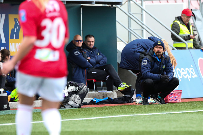 „Fyrri hálfleikurinn var eins og við lögðum upp með. Bakka og leyfa Völsurum að halda boltanum og reyna sækja hratt en við fengum reyndar ekki margar sóknir í fyrri hálfleik. Ég var ánægður með hreyfinguna á vörninni og varnarvinnunni. Það var svolítið skítt að fá á sig mark í byrjun seinni hálfleiks sem breytti þessu aðeins en við héldum áfram að leyfa þeim að stjórna leiknum. Svo þegar þær gera mark númer tvö, þá var þetta svo sem nánast búið,“ sagði Róbert eftir leik.