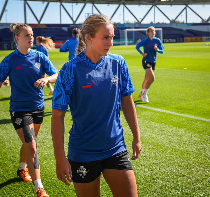 „Við erum komnar í umspilið sama hvernig fer. Við erum í svakalegum möguleika. Við erum í bílstjórasætinu að komast beint á HM. Það er staðan sem við viljum vera í," segir Alexandra í viðtalinu sem má sjá í heild sinni hér að ofan.