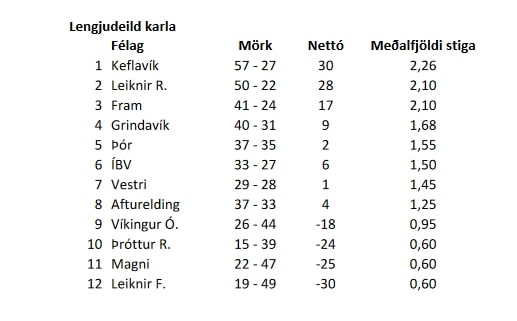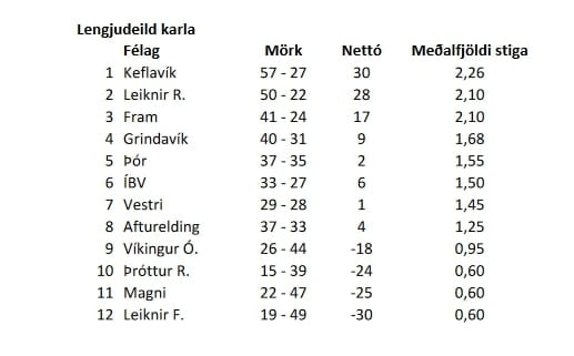 Þrjú lið enduðu jöfn á botni Lengjudeildarinnar en markatala Þróttar R. var betri en markatala Manga og Leiknis F.