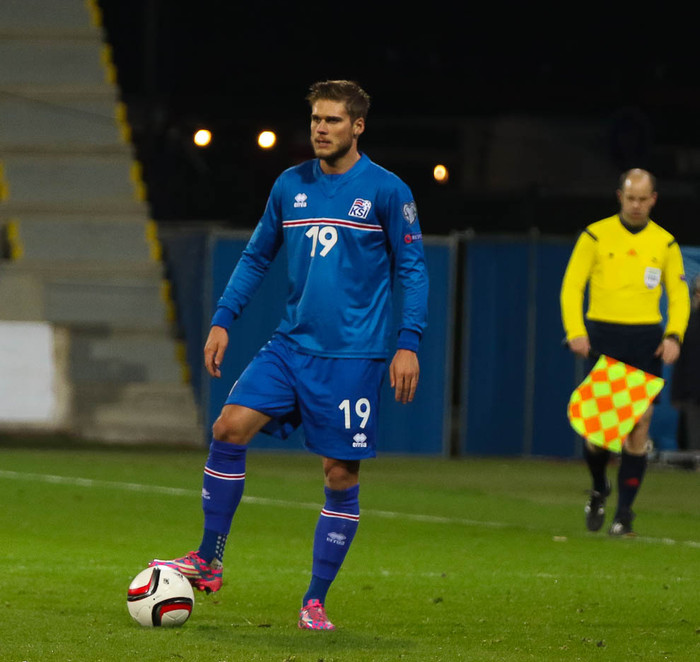 Nánar er rætt við Rúrik í sjónvarpinu að ofan en hann var ekki hrifinn af blautum vellinum.