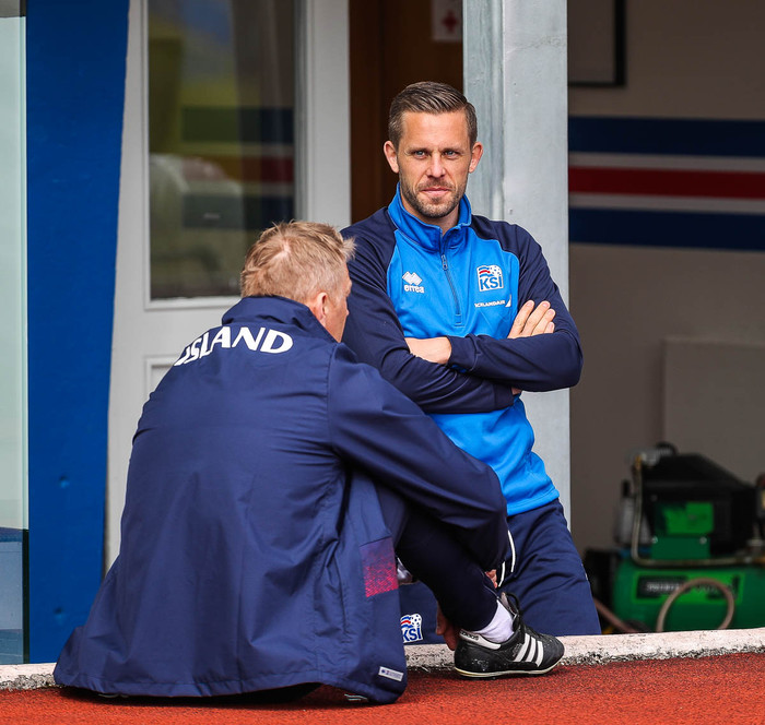 „Það er möguleiki á því," sagði Helgi Kolviðsson, aðstoðarþjálfari landsliðsins, aðspurður hvort Gylfi verði með.