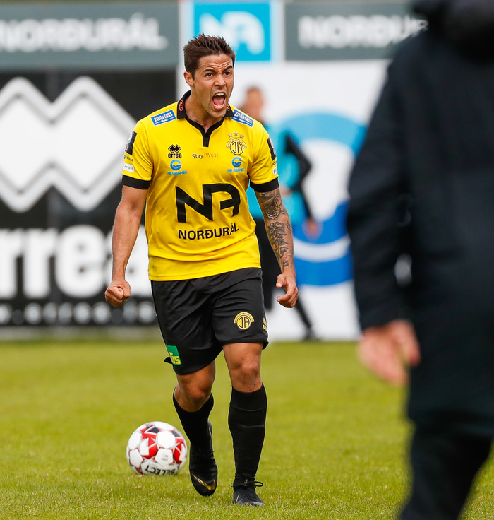 Sindri Snær Magnússon fékk að líta rauða spjaldið fyrir brot á Gonzalo og Gonzalo sjálfur hefði getað fengið að líta rauða spjaldið fyrir brot á 75. mínútu.