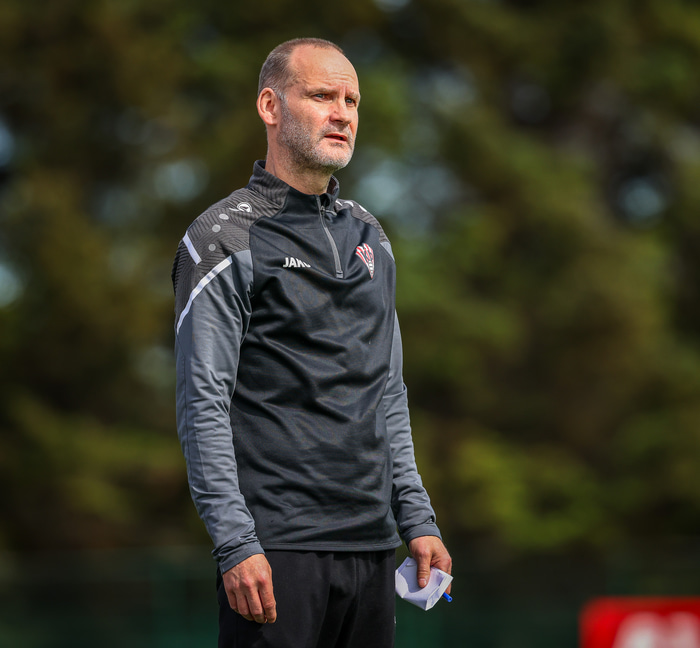 „Ég er aðallega ánægður með að búa til svona mörg færi á móti toppliðinu og vera með þá í köðlunum, sérstaklega í fyrstu 25 mínúturnar í seinni hálfleik."