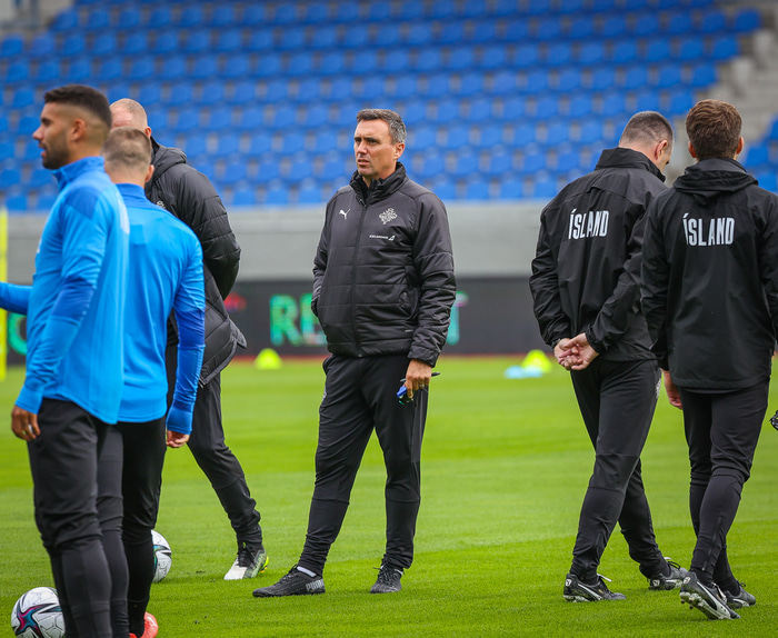 „Leikmennirnir eru hérna því þeir elska ísland og elska að spila fyrir Ísland. Ég veit hvað það er að standa á laugardalsvelli og heyra þjóðsönginn. Ástríðan fyrir fótbolta er hæsta level af ástríðu að fá að spila fyrir Ísland. Þeir eru hér til að gera það og eru það sterkir a þeir vilja gera það þrátt fyrir allt. Það er auðveldast að labba í burtu núna. Þei eru ekki 100% núna og ég ætla ekki að biðja um það en bið bara um að þeir sýni þessa ástríðu á fimmtudaginn."