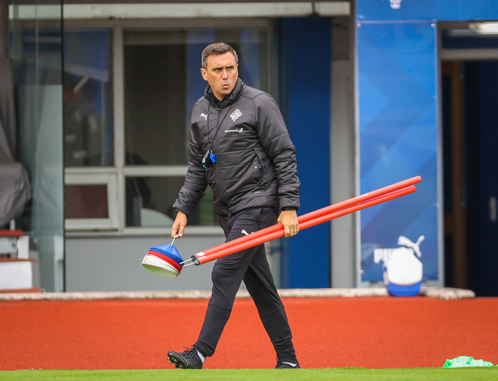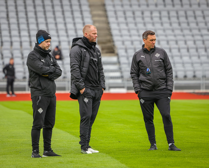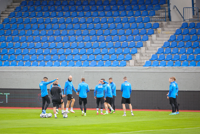 „Staðan á hópnum gagnvart meiðslum er í fínu lagi. Við erum á góðu róli þar. Leikmennirnir hafa fengið leyfi hjá mér, Eiði og staffinu að þeir þurfa ekki að vera í 100% fókus á leikinn við Rúmeníu akkúrat núna. Ef ég bæði um það væri ég ekki góður þjálfari og ekki góð persóna. Menn verða að gera þetta á réttum forsendum og fá að vinna okkar vinnu í friði."