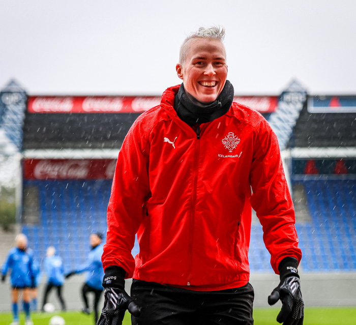 „Þetta landsliðsverkefni leggst ljómandi vel í mig, ótrúlega spennt og það er mikið í húfi," sagði landsliðsmarkvörðurinn Sandra Sigurðardóttir fyrir æfingu liðsins í dag.