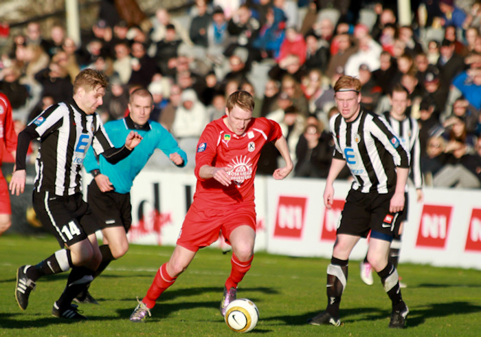 Bæði lið sigruðu fyrsta leik sinn þetta sumarið og því stóðu væntingar til þess að leikurinn yrði fjörugur. Fyrri hálfleikurinn var það þó ekki og var lítið um góða tilburði. Hættulegasta færi fyrrihálfleiksins átti sér stað á 14 mínútu leiksins er Baldur Sigurðsson átti flotta stungusendingu á Kjartan Henry sem komst einn á móti Ómari í markinu og ágætt skot hans fór rétt framhjá markinu.