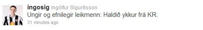 „Ungir og efnilegir leikmenn. Haldið ykkur frá KR." - Þetta skrifaði Ingólfur Sigurðsson, leikmaður KR, á Twitter-síðu sína í gær. Um tíu mínútum síðar fjarlægði hann þessa færslu. Ingólfur vill losna frá liðinu og er tilbúinn að fara þær leiðir sem til þarf.