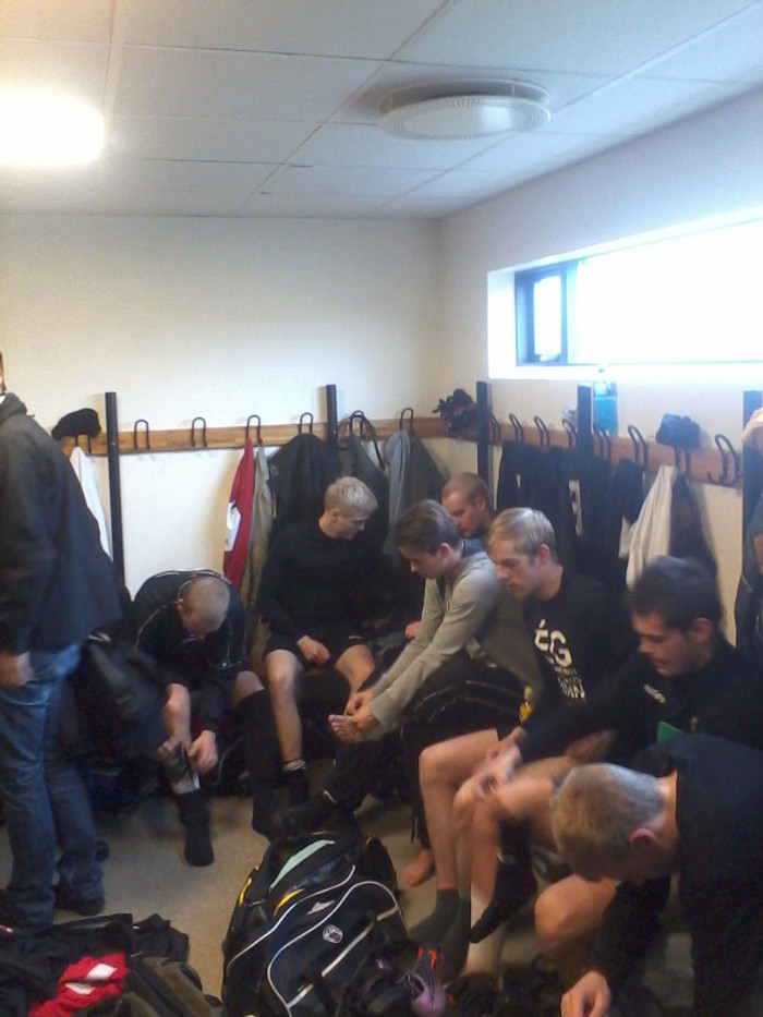 Stefán Hirst birti þessa mynd úr klefanum hjá KV þar sem menn voru að undirbúa sig fyrir leik gegn Víkingi.