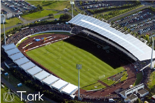 Lítið aðeins á þessa mynd og svarið því hvort eitthvað vit sé í því að vilja frekar Laugardalsvöllinn eins og hann er. Þetta er engin fantasía heldur var svona framkvæmd raunhæfur kostur.
