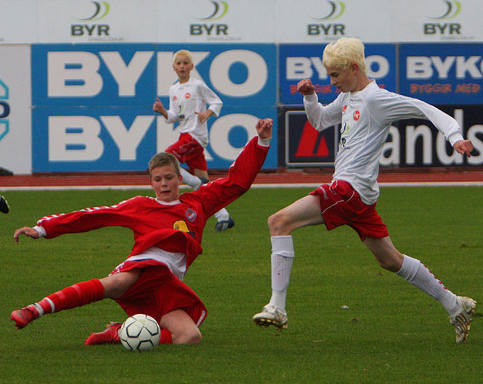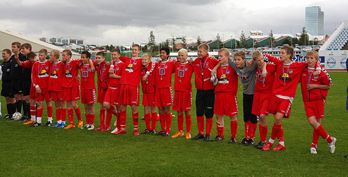Í dag á Kópavogsvelli mættust HK og Haukar í úrslitaleik Íslandsmótsins í 4.flokki karla. Bæði lið voru fyrir leikinn taplaus í sumar. HK sigruðu A-riðil en þeir sigruðu þar alla leikina nema tvo og gerðu jafntefli í þeim leikjum. Haukar hinsvegar fóru með sigur af hólmi í öllum leikjum sínum í B-riðli.