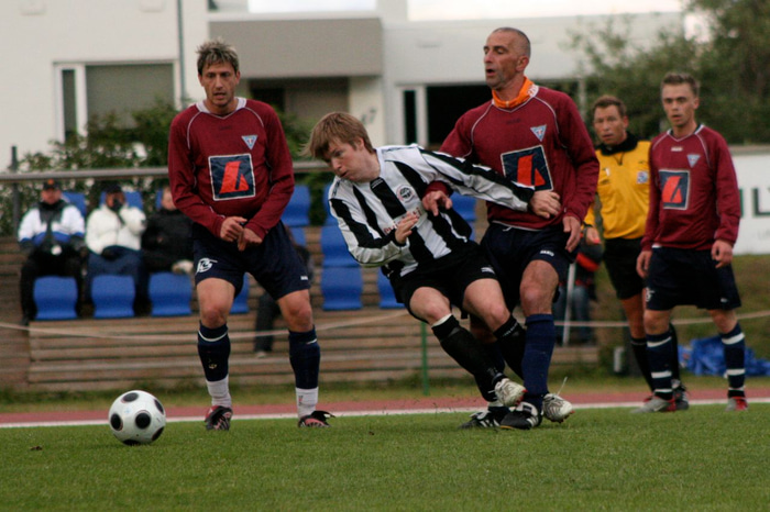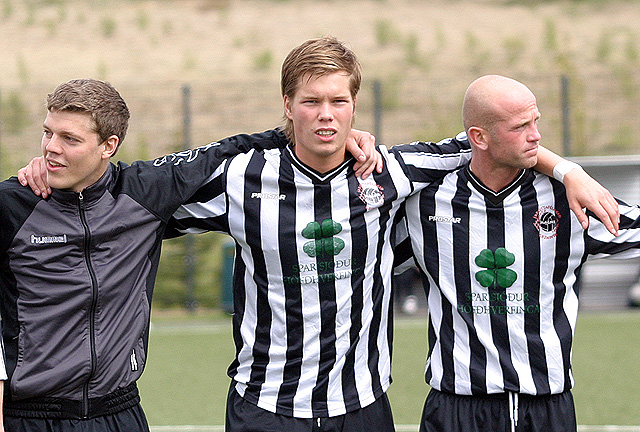 Búningar: Svört og hví treyja, svartar buxur, svartir og rauðir sokkar.