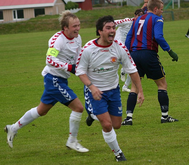 Búningar: Hvít treyja, bláar buxur, hvítir sokkar.
