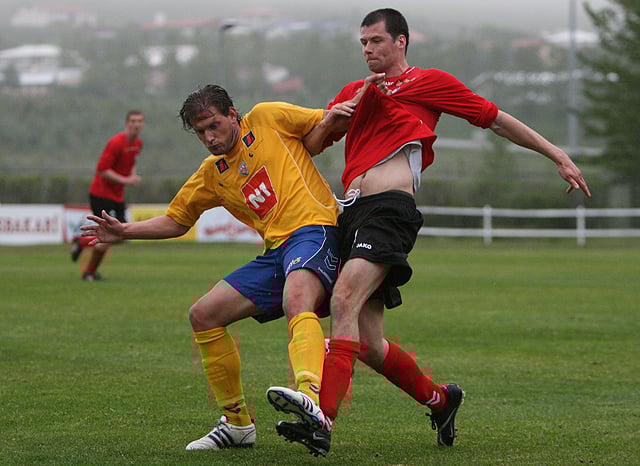 Í fyrri hálfleiknum urðu bæði lið fyrir því að missa leikmann af velli. Paul Clapson, framherji Aftureldingar, meiddist á ökkla og var borinn af velli og Dean Martin spilandi þjálfari KA meiddist aftan í læri og varð að fara af velli.