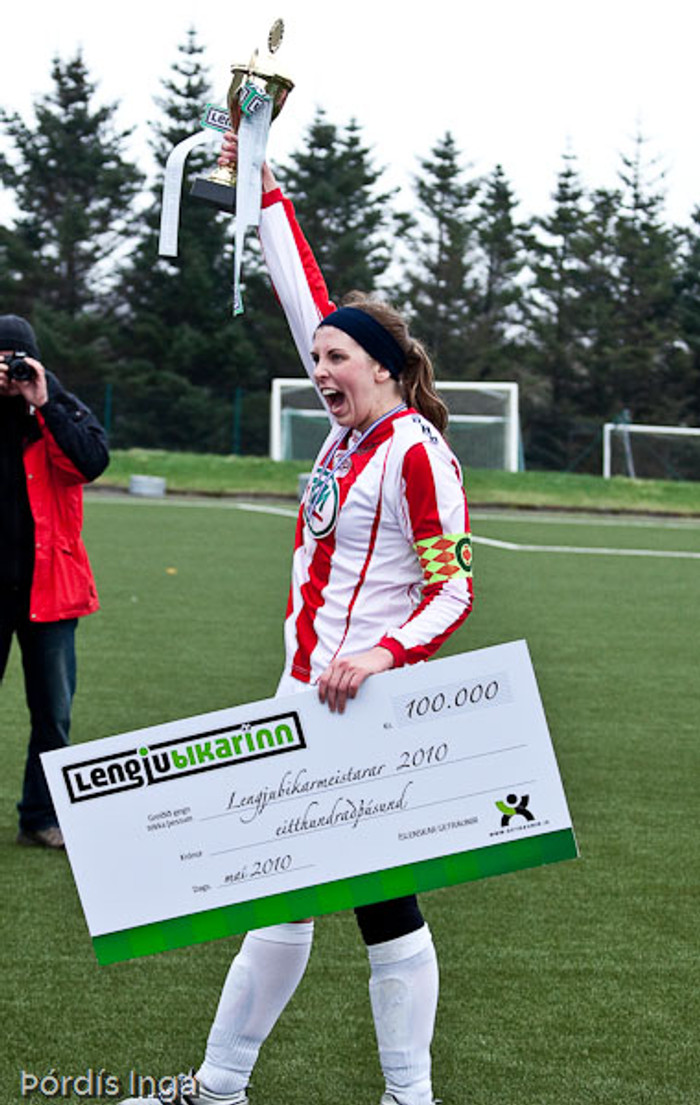 Það var svo þegar átta mínútur lifðu leiks sem að Soffía skoraði löglegt mark með laglegu skoti af vítateigslínunni og yfir Önnu Halldóru sem hafði átt mjög góðan leik í marki Völsungs. Staðan orðin 3-2 og þannig var hún út framlenginguna og Þróttur því Lengjubikarmeistari í C-deild 2010.