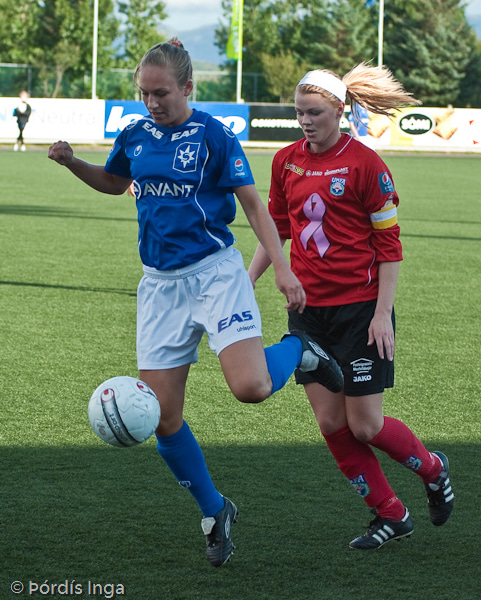 Lindsay Schwartz bætti síðan við öðru marki í seinni hálfleiknum. Lindsay, sem var einnig í baráttunni við Kolbrúnu í fyrra markinu, náði til fyrirgjafar og tók boltann í fyrstu snertingu framhjá markverðinum og lagði knöttinn í autt markið.