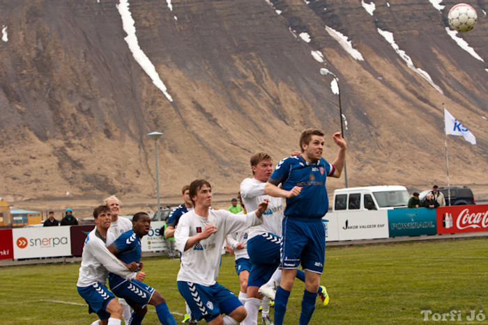 ,,Það er vetur fyrir vestan í augnablikinu svo við erum búnir að æfa gervigrasi alla vikuna, við kunnum þetta alveg. Það gekk mjög vel í dag og mér fannst við miklu grimmari og betri allan leikinn. Mér fannst þeir eiga lítið í okkur í dag."