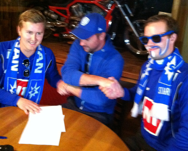 Til að undirstrika það þá skrifaði Veigar undir samning þess efnis við Silfurskeiðina, stuðningsmannasveit Stjörnunnar, í upphitun fyrir leikinn gegn KR í dag.