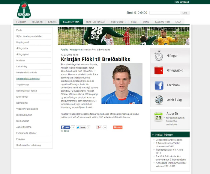 Frétt á heimasíðu Breiðabliks í síðustu viku. Þar kemur fram að Kristján Flóki hafi skrifað undir þriggja ára samning við Blika.