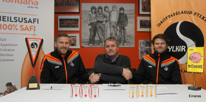 Garðar Jóhannsson fer í þjálfaraúlpuna hjá Fylki. Hér er hann við undirskriftina ásamt Ásgeiri Ásgeirssyni formanni og Hermanni Hreiðarssyni þjálfara.