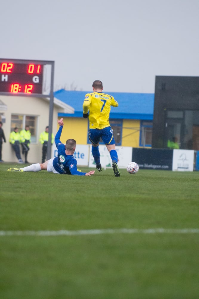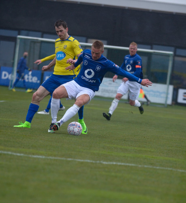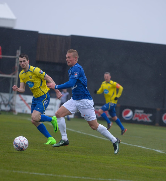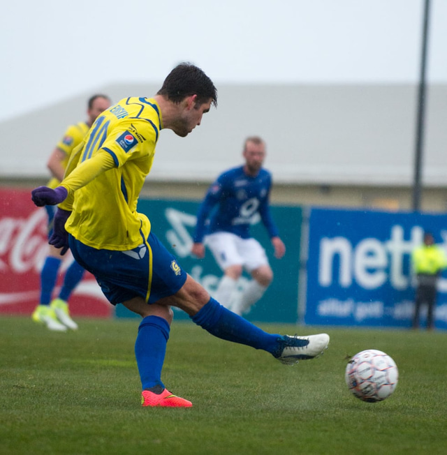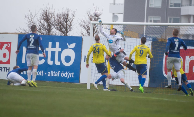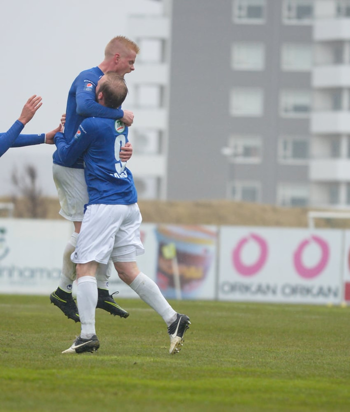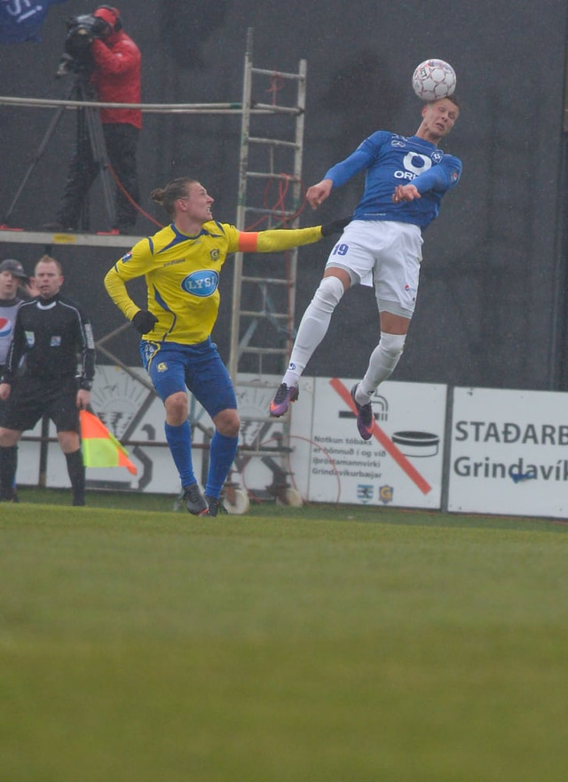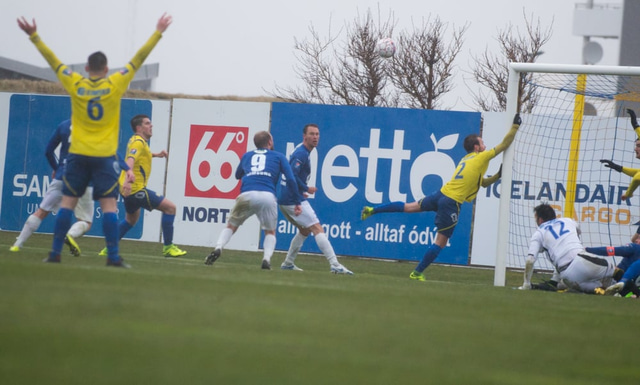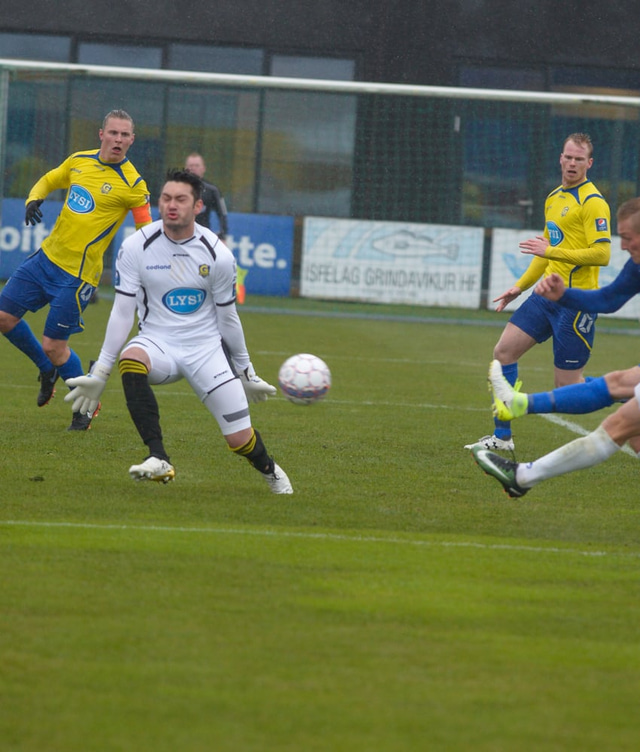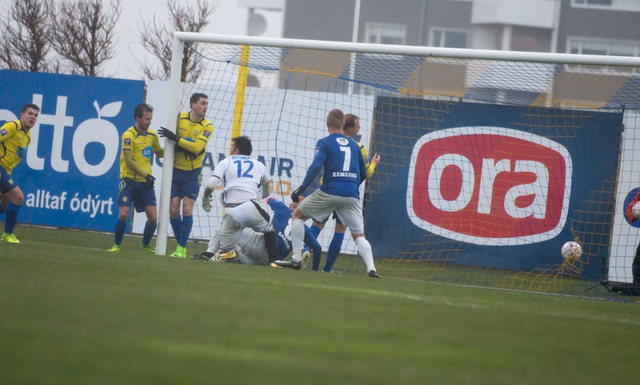 Grindavík komst yfir eftir hálftíma leik, er þeir fengu vítaspyrnu og úr henni skoraði Alexander Veigar Þórarinsson nokkuð örugglega
