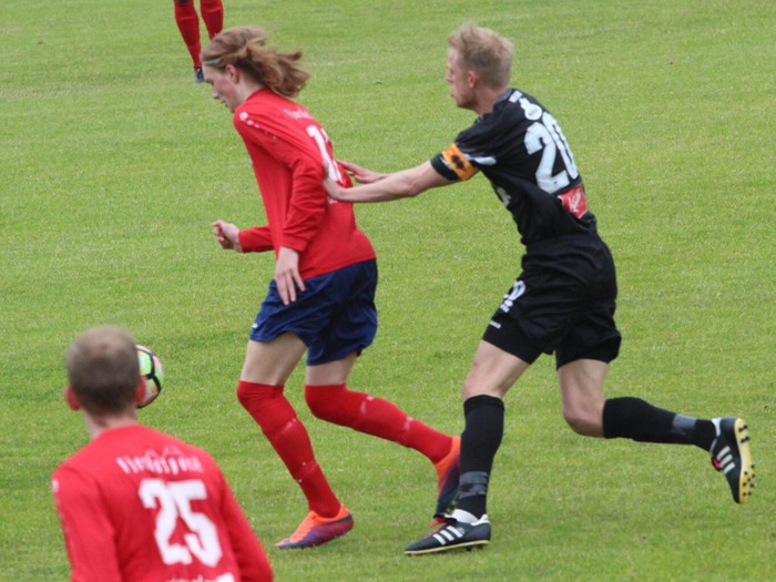 Staðan var 1-1 á 40. mínútu leiksins þegar Káramenn misstu mann af velli en Sindri Snæfells Kristinsson fékk þá rautt spjald.