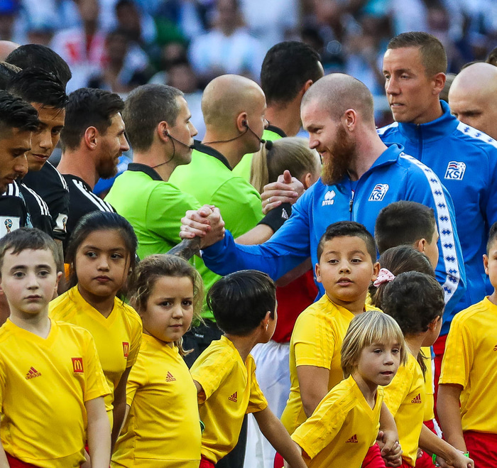 Aron Einar stjórnaði víkingaklappi á Old Trafford