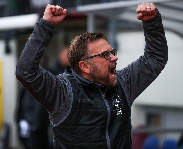 „Þetta er stórkostlegt afrek að koma svona til baka og skora þetta lokamark. Algjör snilld. Við gáfumst aldrei upp. Þeir eru drullugóðir Levadia og við áttum í helvítis basli með þá. Við sýndum seiglu. Það er geggjuð stemning í herbúðum Stjörnunnar þessa dagana," sagði Rúnar Páll.