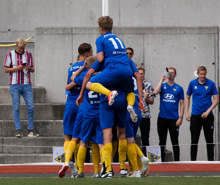 „Ég er ógeðslega sáttur. Mér fannst við betri en þeir. Þeir fengu sín færi en við höfðum tök á leiknum. Þegar þeir minnkuðu muninn þá stigum við upp og kláruðum þetta. Ég hef aldrei verið jafn glaður að setja hann," sagði Sölvi skælbrosandi.
