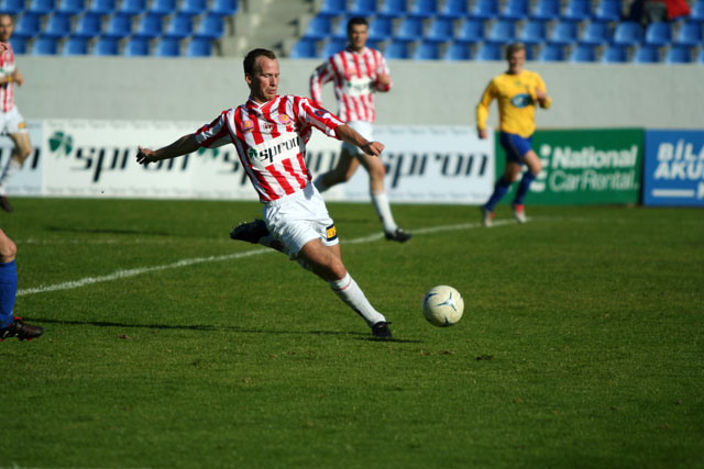Á 55.mínútu kastaði Boban boltanum fram á Guðmund Andra Bjarnason, Halldór Hilimisson vann boltann og skoraði með hörkuskoti niður í hornið af um 25 metra færi.