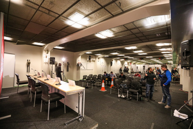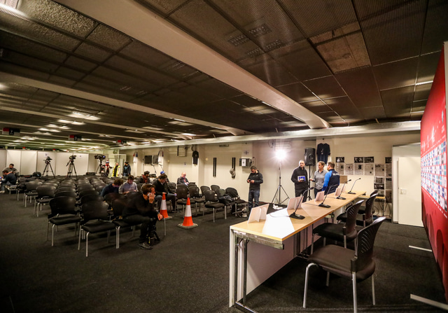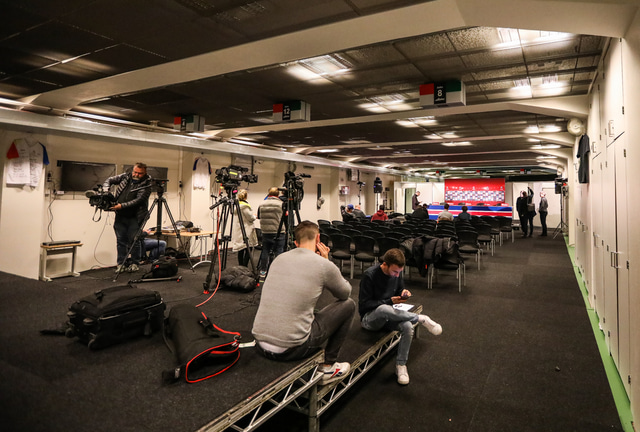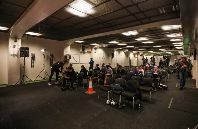 Myndirnar sem fylgja fréttinni sýna nýja herbergið og keilurnar en í heildina eru 116 fjölmiðlamenn á leiknum.
