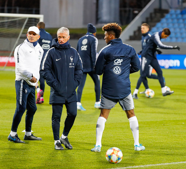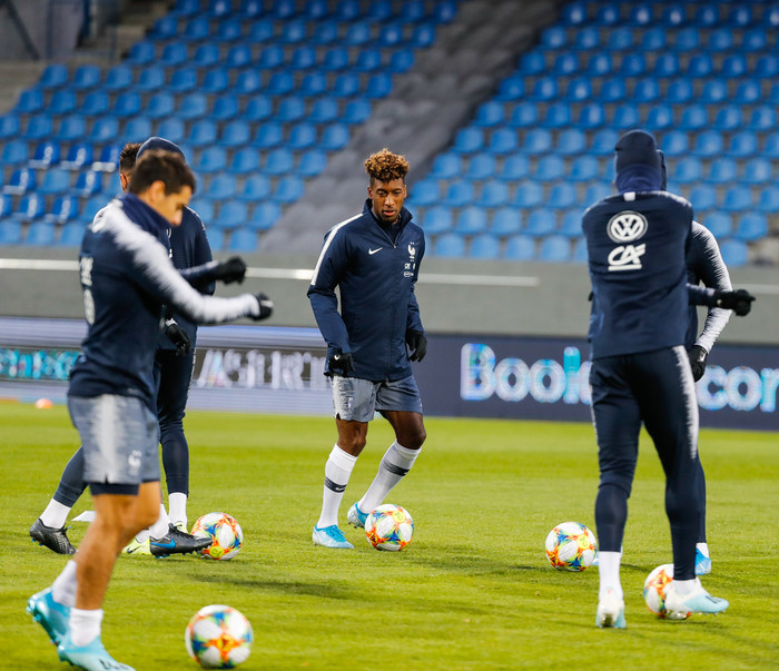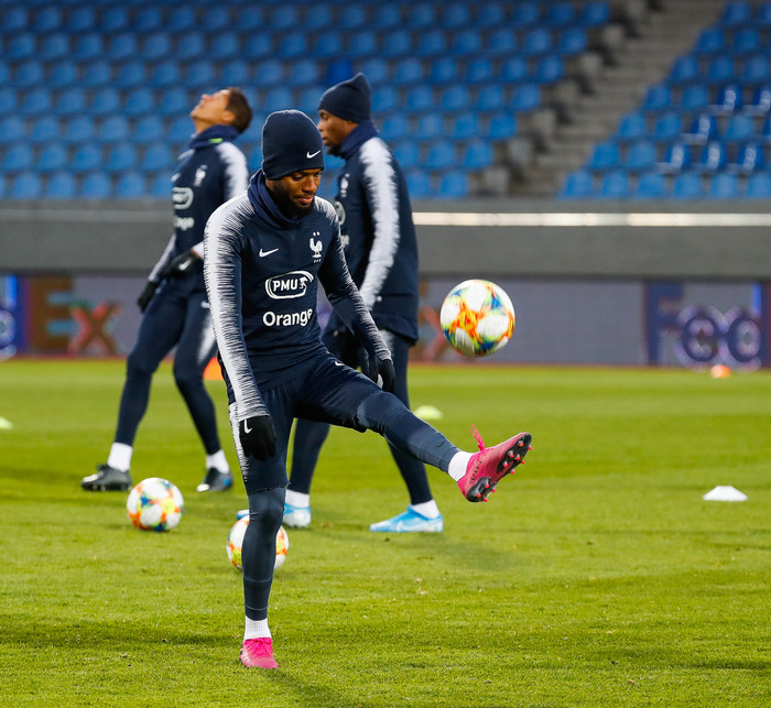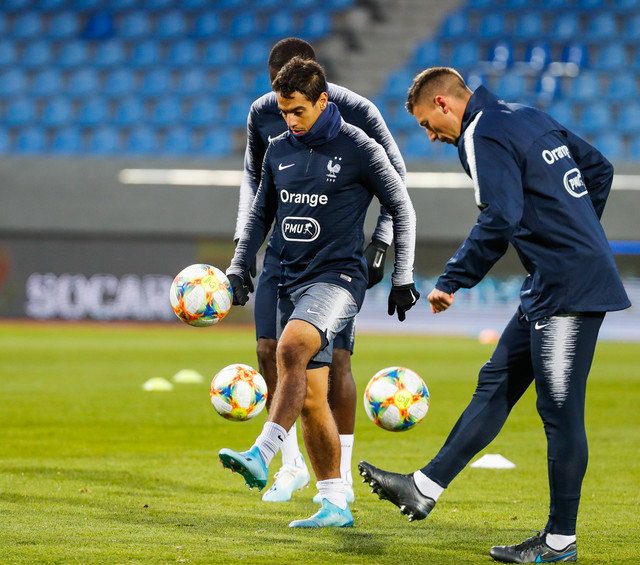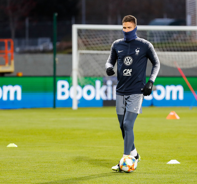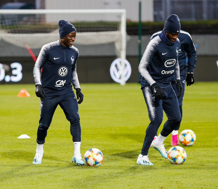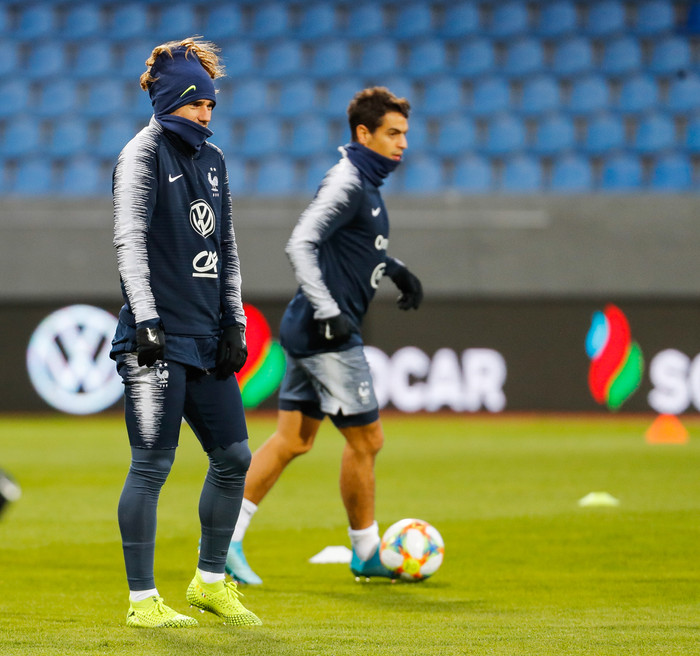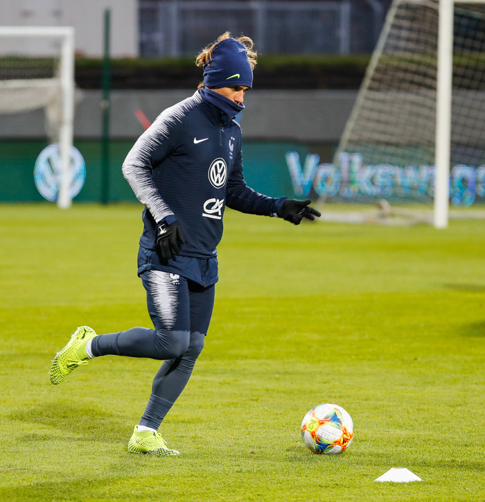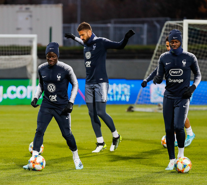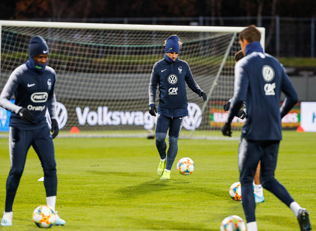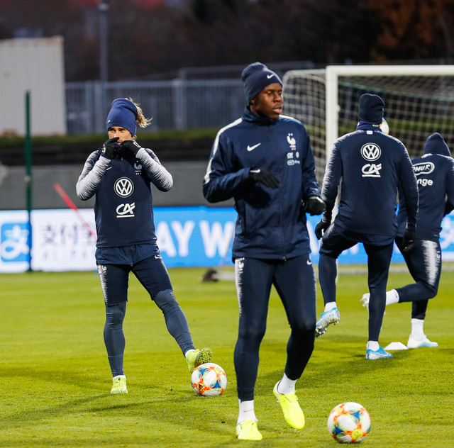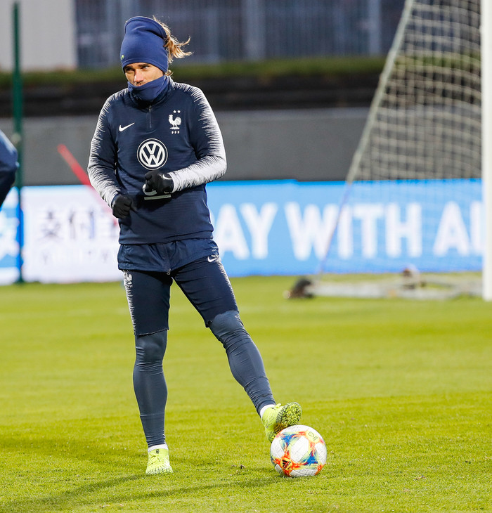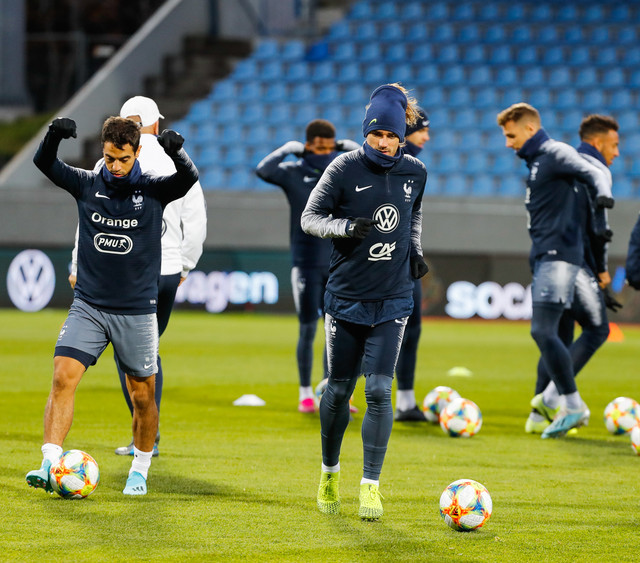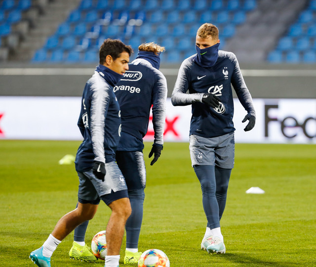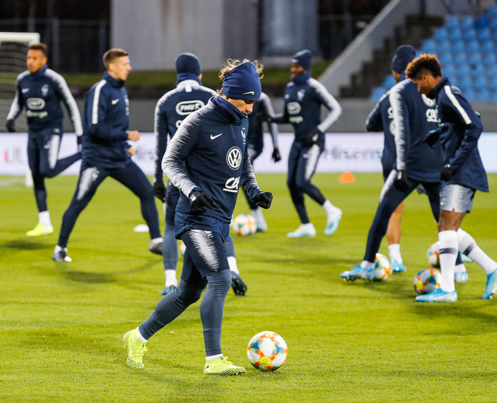 Þegar jók í vindinn sinni partinn í gær varð mjög kalt í höfuðborginni. Heimsmeistarar Frakka mættu á æfingu klukkan 18:00 á Laugardalsvelli og var greinilega mjög kalt eins og myndirnar bera með sér.