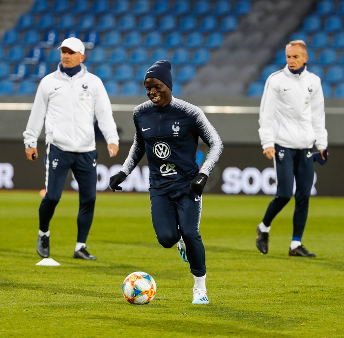 N'Golo Kante var ekki með Frakklandi í 1-0 sigrinum á Íslandi í undankeppni EM 2020 í gærkvöldi.