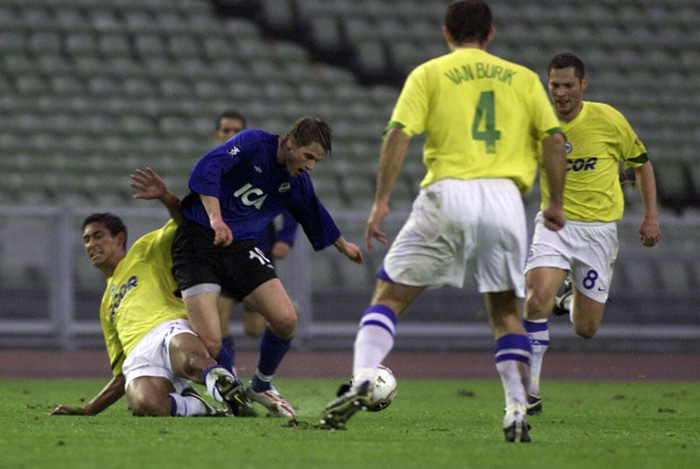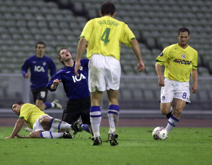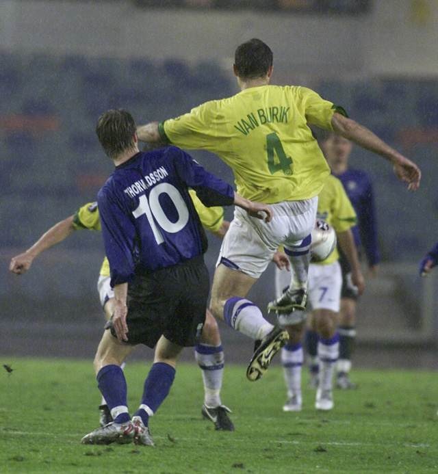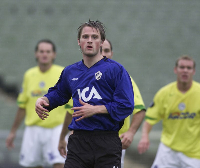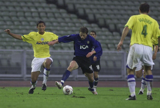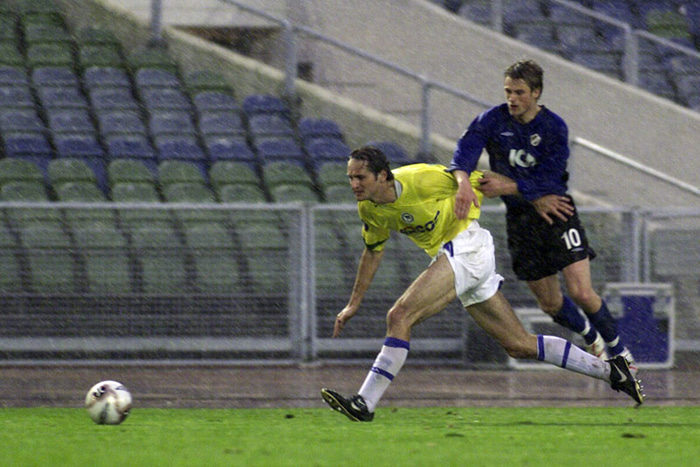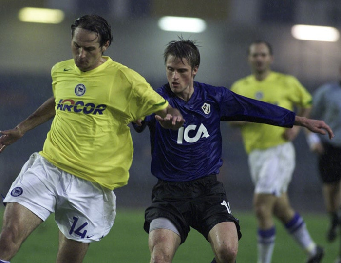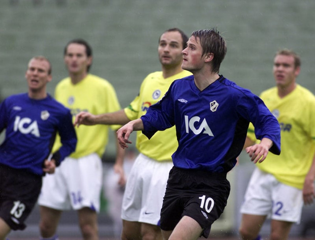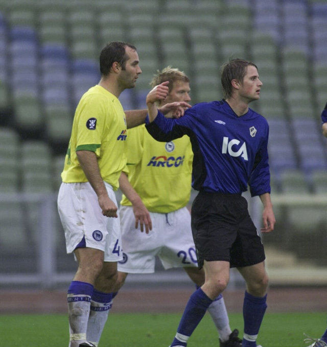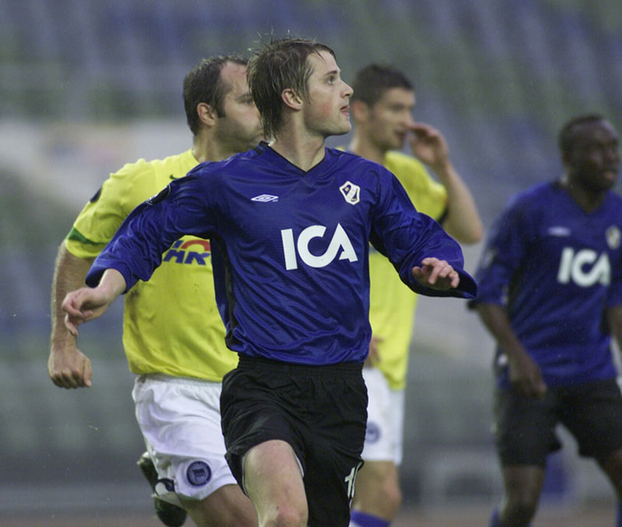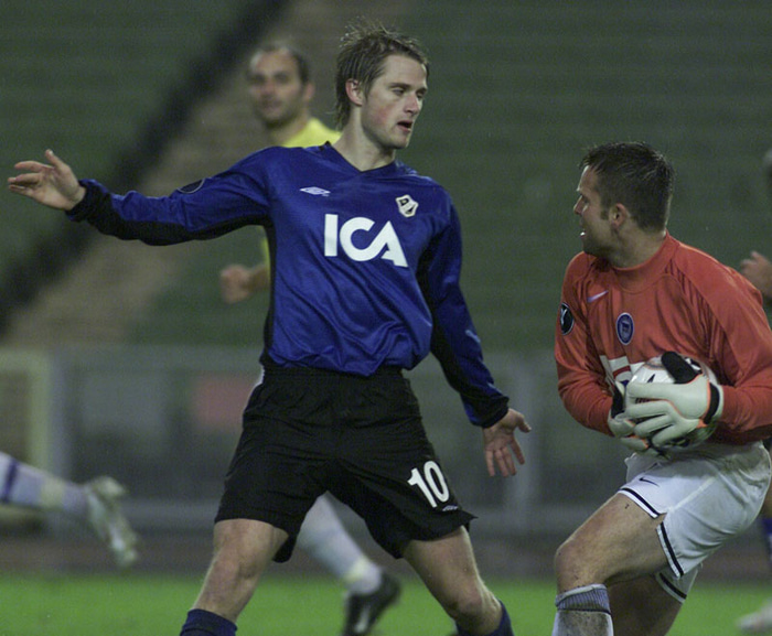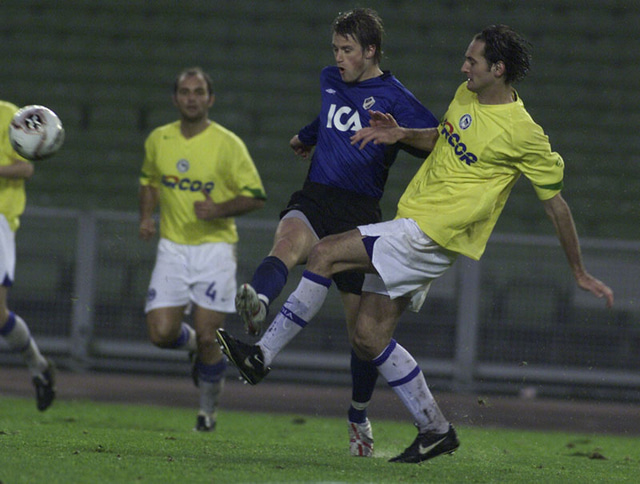 Gunnar Heiðar lék með liði sínu Halmstad sem mætti Hertha Berlin frá Þýskalandi í UEFA Cup í kvöld og Guðmundur Svansson ljósmyndari okkar í Svíþjóð var á vellinum og tók myndirnar að neðan af Gunnari.