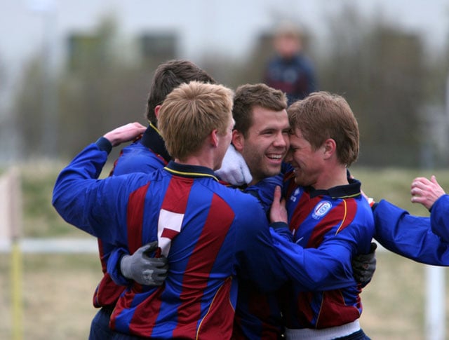 Búningar: Vínrauð treyja, bláar buxur, bláir og rauðir sokkar.