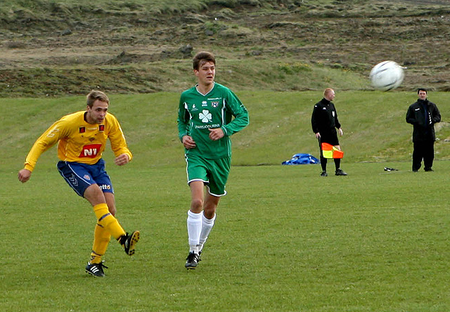 Síðari hálfleikurinn byrjaði eins og sá fyrri var, lítið um færi en KS/Leiftur voru þó ögn sterkari aðilinn.