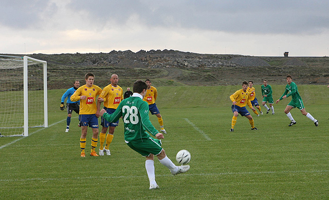 Njarðvíkingar fengu svo hornspyrnu boltinn datt fyrir utan teiginn þar sem Kristinn Björnsson fékk boltann en skaut framhjá.