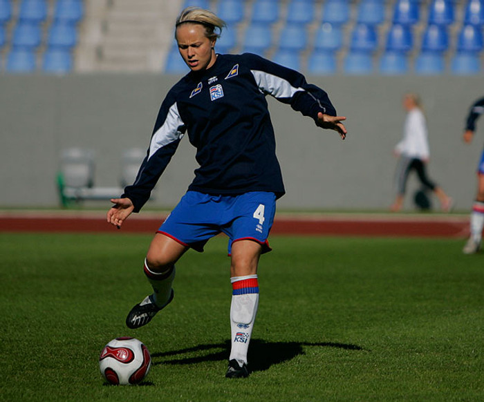 Edda Garðarsdóttir er 29 ára miðjumaður og ein þekktasta knattspyrnukona okkar Íslendinga. Hún hefur verið fastamaður í A-landsliði Íslands í rúmlega áratug og á að baki 60 leiki og hefur skorað í þeim 2 mörk.