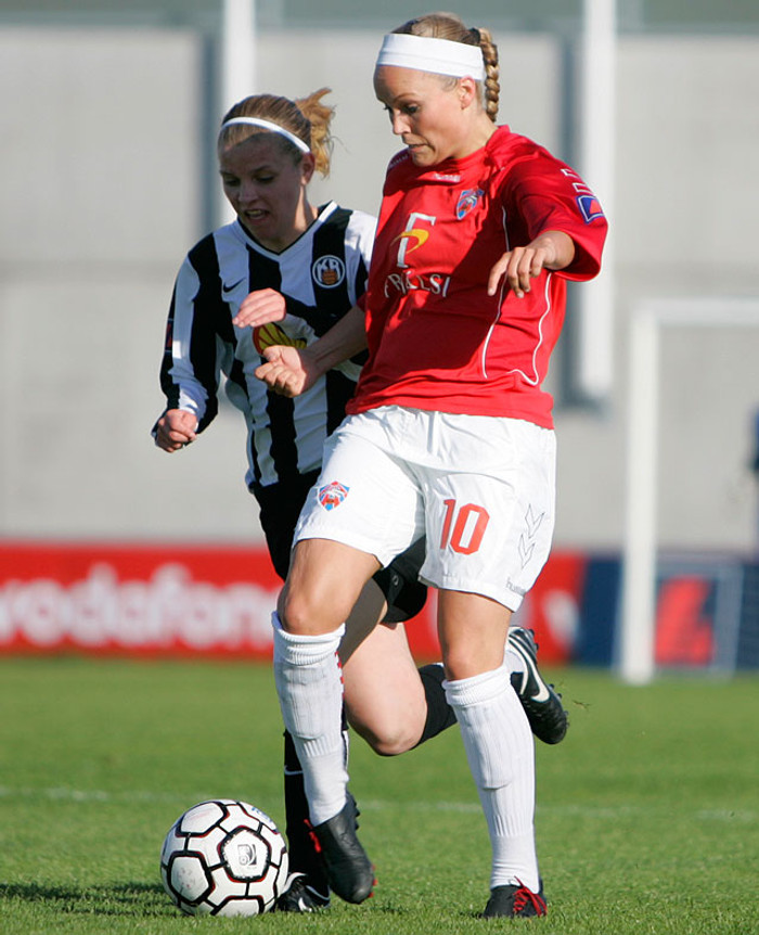 Dóra María lagði upp fyrsta mark leiksins þegar hún átti laglegt þríhyrningsspil við Margréti Láru Viðarsdóttir og lagði síðan boltann á Katríni Jónsdóttur sem skoraði.