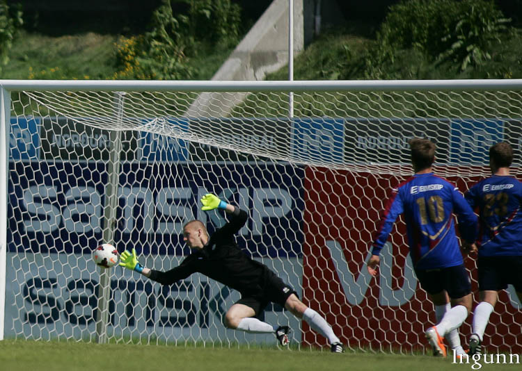 Ákveðið jafnræði var svo með liðunum í seinni hálfleik uns á 55. mínútu þegar Valdimar Pálsson dómari dæmdi vítaspyrnu á Leiknismenn en hann vildi meina að varnarmaður þeirra hefði handleikið boltann inni í vítateig. Gestirnir mótmæltu ákvörðun dómarans en honum var ekki snúið. Úr spyrnunni skoraði Garðar Gunnlaugsson af öryggi.