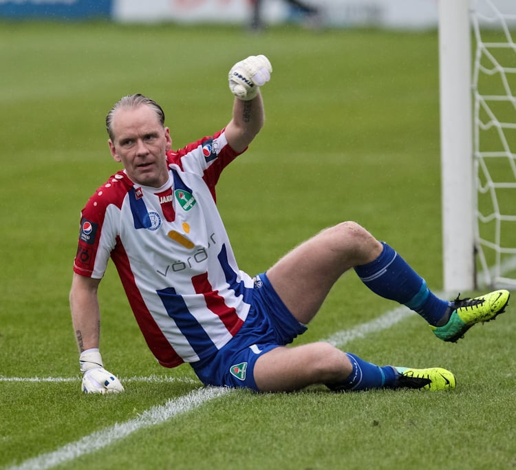 Húsvíkingarnir Elfar Árni og Aron Bjarki voru í kapphlaupi um boltann og Stefán Logi tók þá ákvörðun að koma út úr markinu og reyna að fara í knöttinn. Það mistókst honum en í staðinn fór hann í Elfar Árna. Garðar dómari dæmdi aukaspyrnu og veitti Stefáni reisupassann. Undirritaður verður að viðurkenna eigin vanþekkingu á akkúrat þessum parti reglubókarinnar en að mörgu leiti var þetta afar ódýrt rautt spjald.