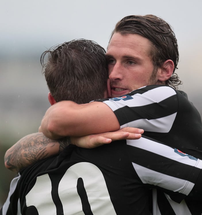 Í upphafi síðari hálfleiks skoruðu þeir jöfnunarmarkið. Þá átti Haukur Heiðar Hauksson, sem hefur verið einn albesti leikmaður KR það sem af er tímabilinu og hlýtur að vera farinn að banka á landsliðsdyrnar, sendingu fyrir markið úr hægra horninu. Kjartan Henry Finnbogason kom á ferðinni og slengdi boltanum í netið af markteigshorninu.