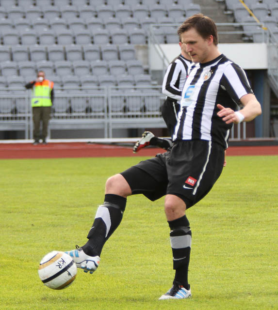 Kjartan Henry steig á punktinn og skoraði af öryggi en hann bætti við öðru marki sínu tíu mínútum síðar. Gunnleifur varði vel frá Kjartani og Atla Sigurjónssyni áður en boltinn barst aftur á Kjartan sem skoraði með skoti á nærstöngina.