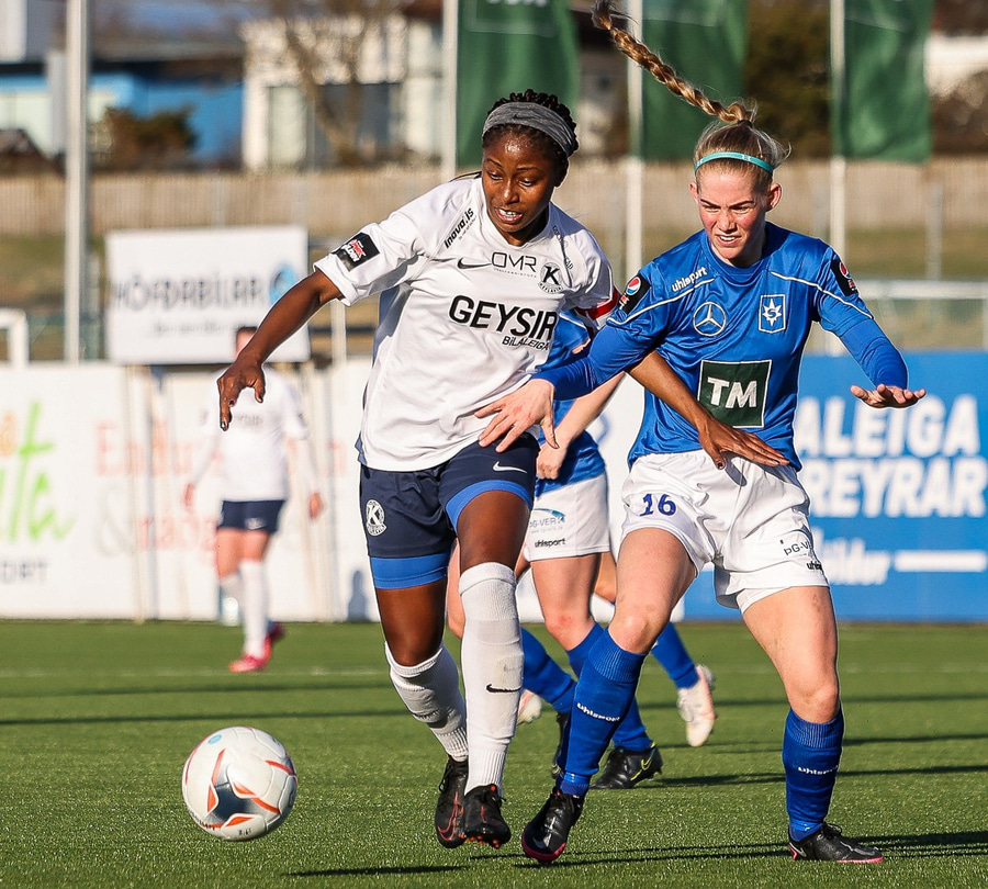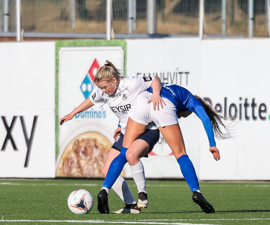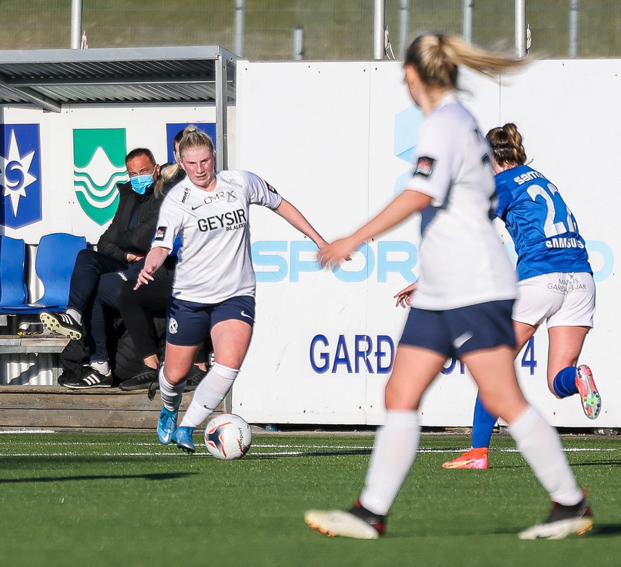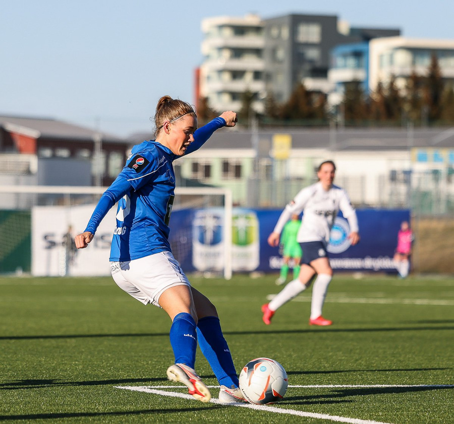 Ég bara get ekki hætt að hugsa um færið sem Úlfa Dís fékk í seinni hálfleik. Hún eflaust ekki heldur. Snyrtileg sending frá Hildigunni sem lenti beint fyrir framan Úlfu sem var mjög nálægt markinu. Hún tók hann á lofti á ferðinni og ætlaði að stýra honum innanfótar í markið. En rétt framhjá!
