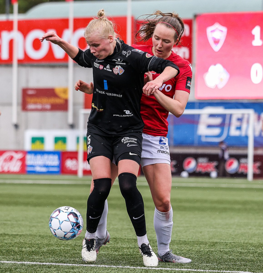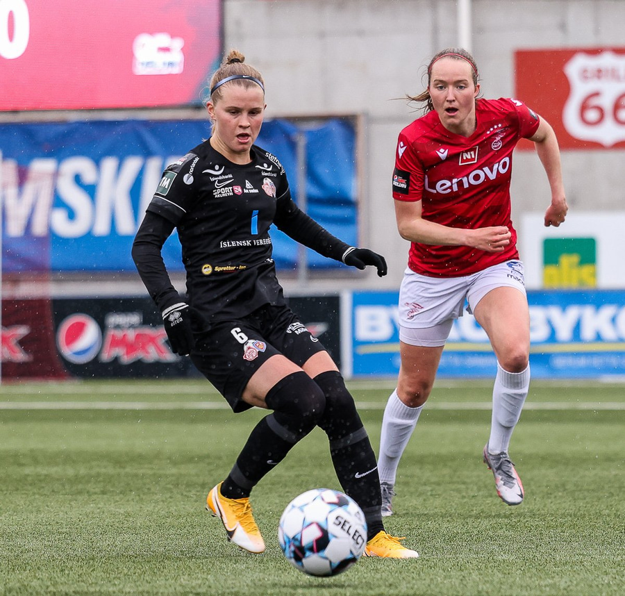 Mér fannst hún skara fram úr hjá Þór/KA í dag. Mjög solid varnarlega en Valskonur náðu lítið sem ekkert að gera sóknarlega. Hún var líka góð í að bera boltann upp völlinn.