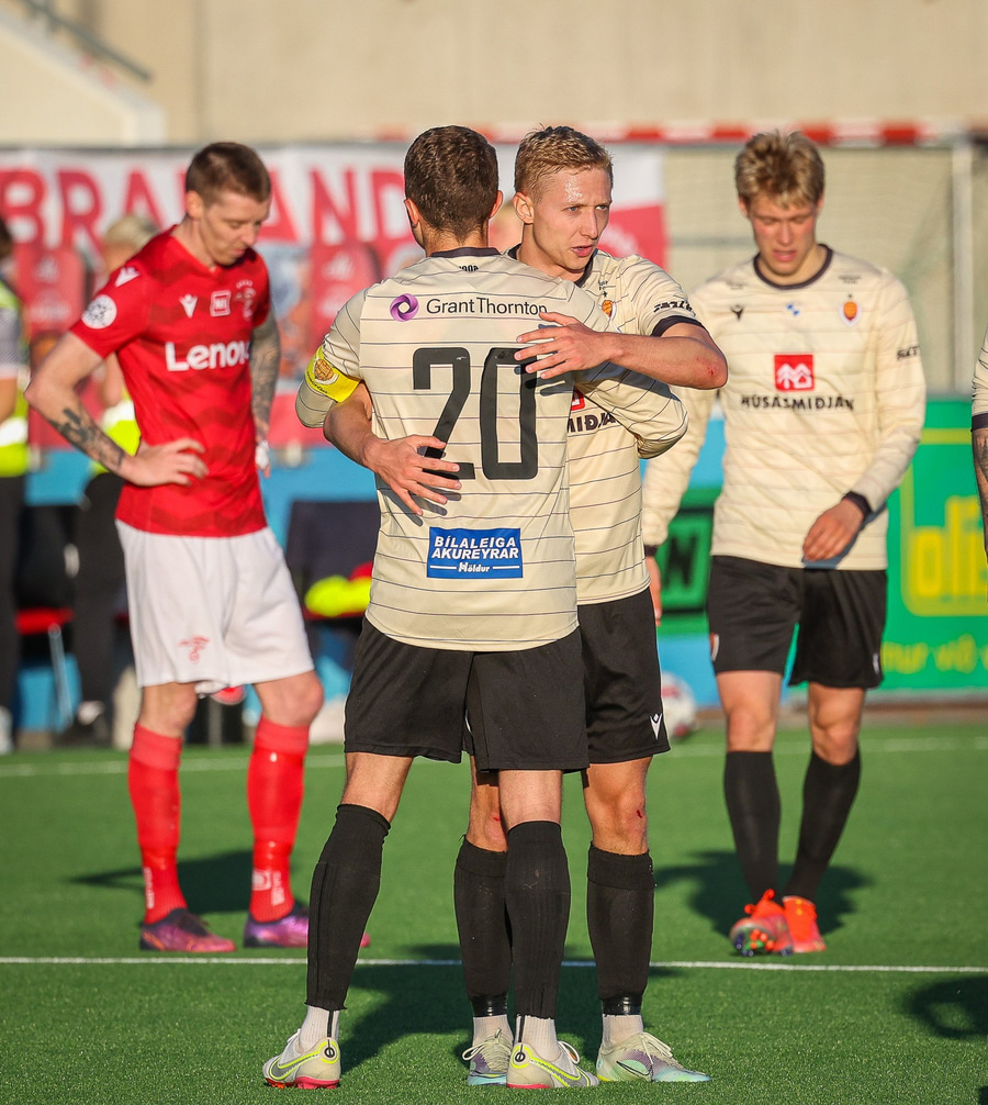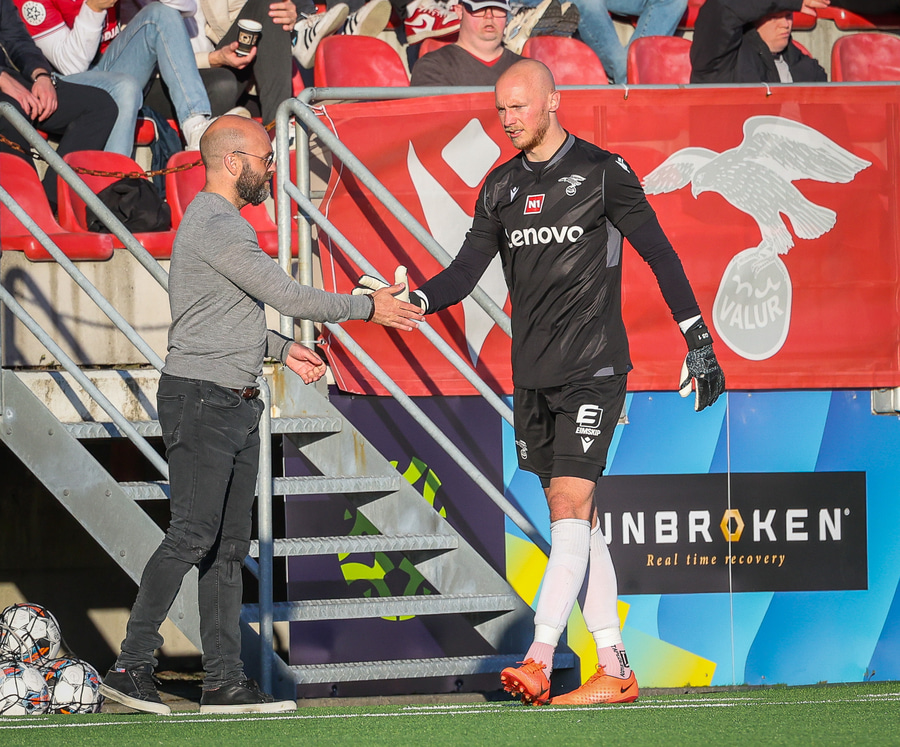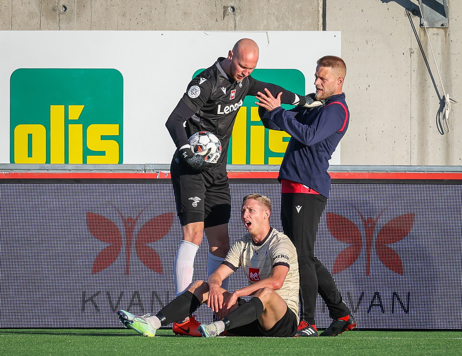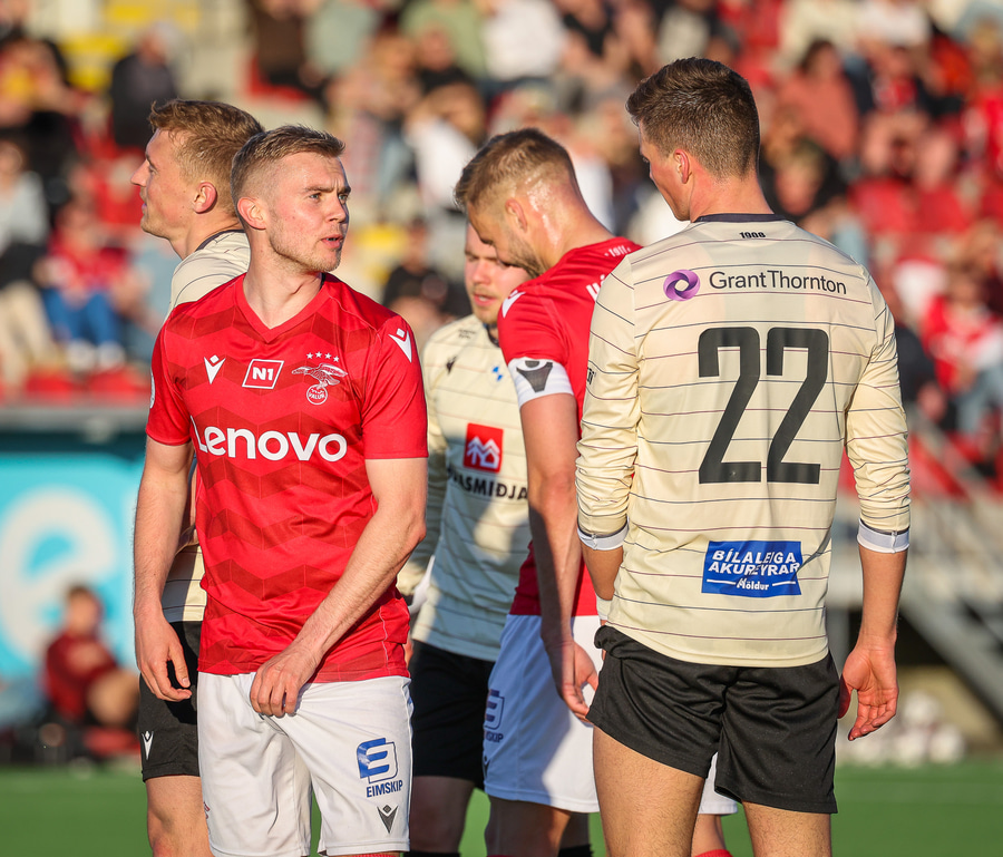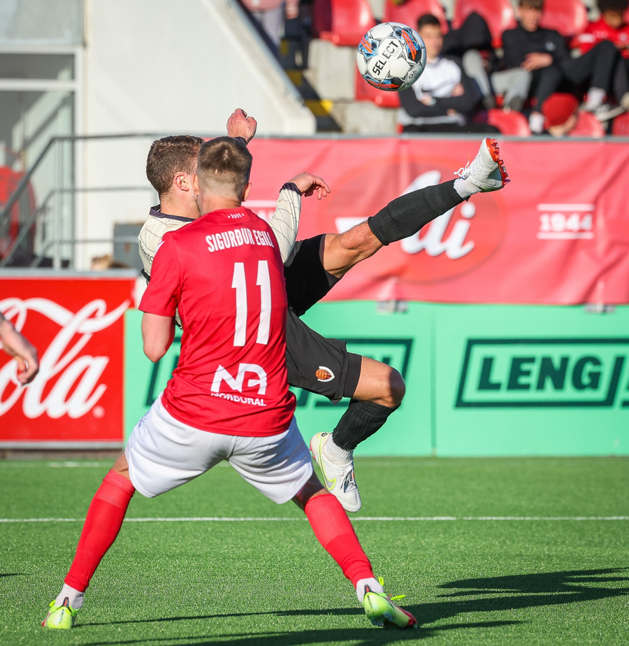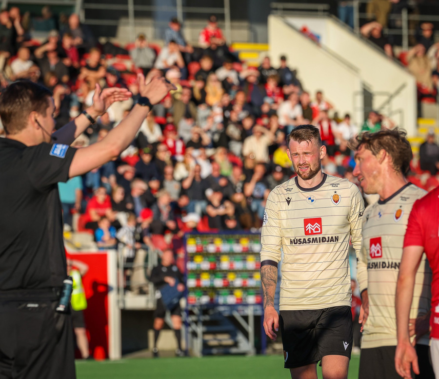 Helgi Guðjóns gerði tilraun til að fiska víti á Guy Smit og uppskar gult spjald. Guy var ekki sáttur með Helga fyrir þessa tilraun, stjakaði við honum og fékk einnig gult spjald.