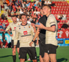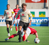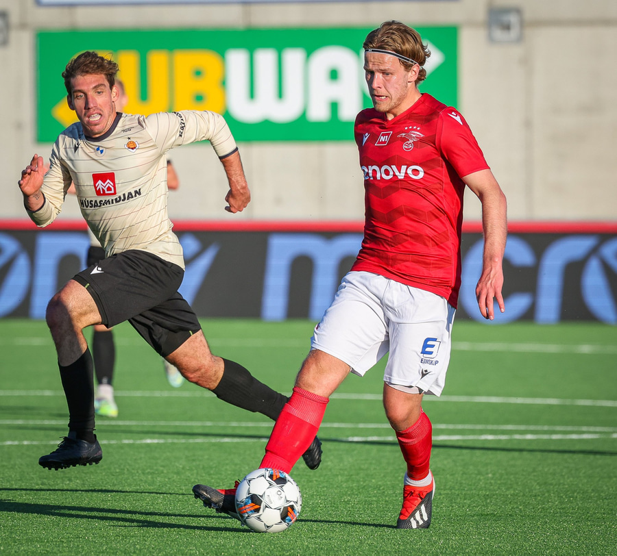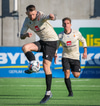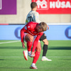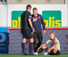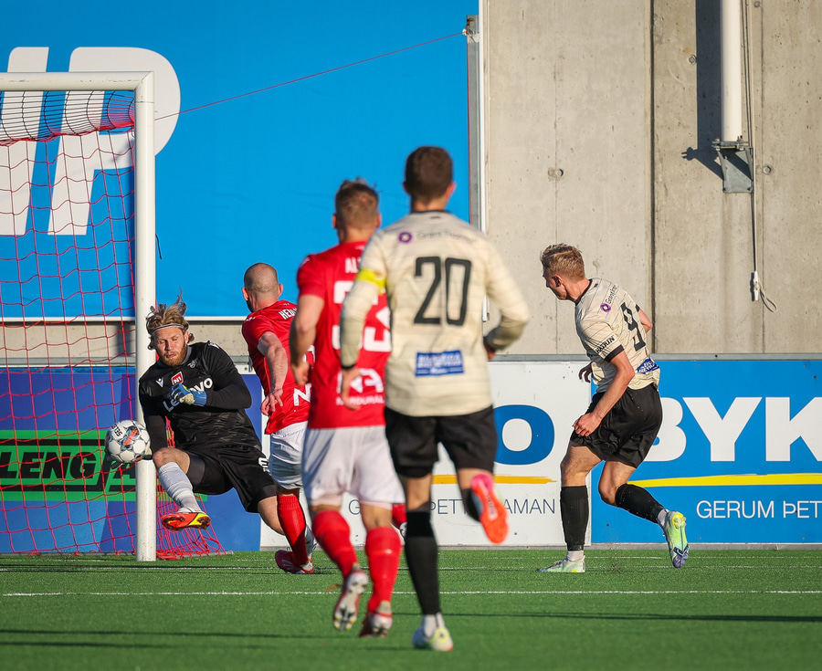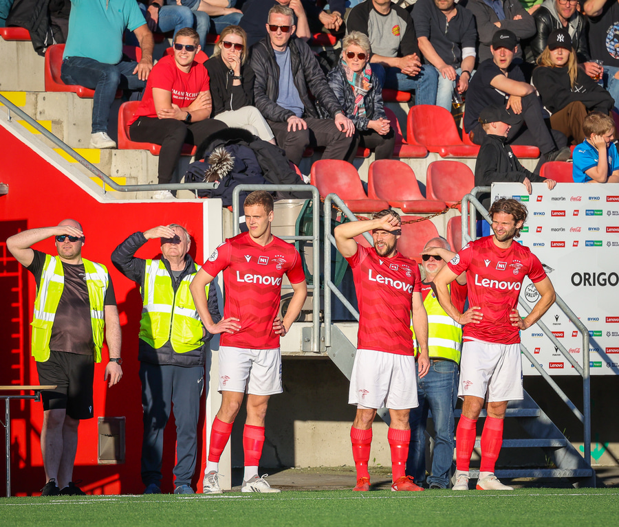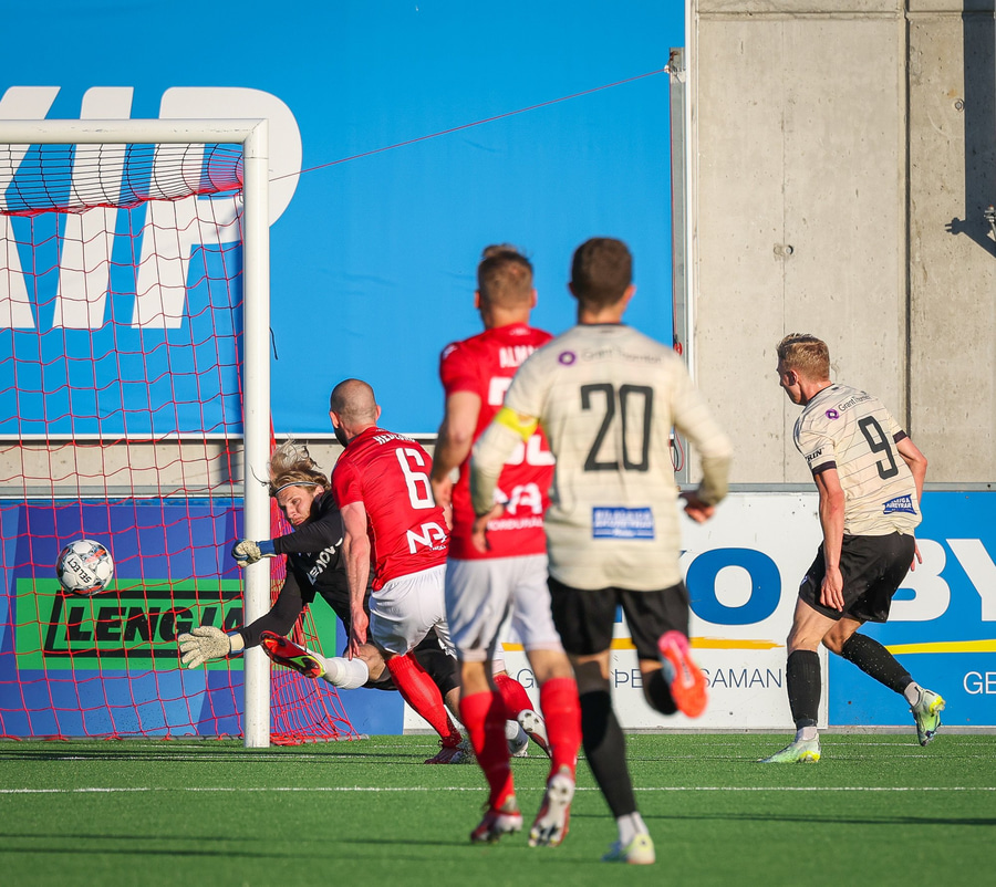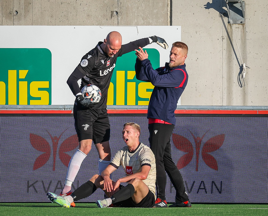 Helgi Guðjóns gerði tilraun til að fiska víti á Guy Smit og uppskar gult spjald. Guy var ekki sáttur með Helga fyrir þessa tilraun, stjakaði við honum og fékk einnig gult spjald.