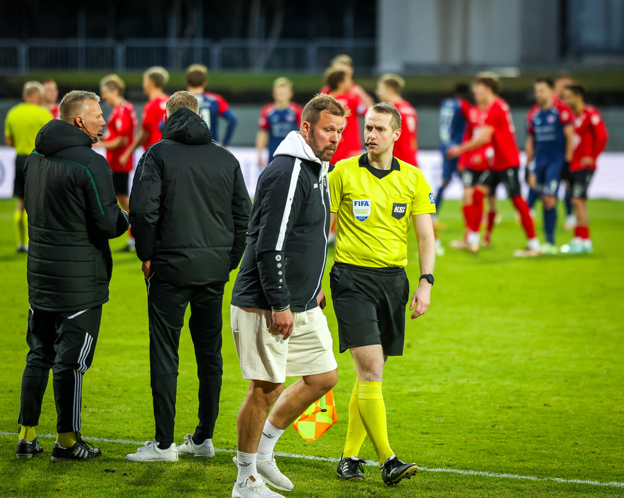 Rétt sleppur með falleinkunn, fyrir utan rauða spjaldið var Erlendur bara ansi fínn í leiknum en að mínu mati var þetta ekki rautt spjald og hefði verið hægt að láta þetta sleppa með gulu spjaldi og láta leikinn klárast 11 á móti 11...