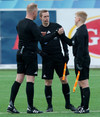 Það var aðstoðardómarinn sem dæmdi markið af. Dómarinn hefði getað séð að það var rangt. Aðstoðardómarinn dregur einkunnina niður.