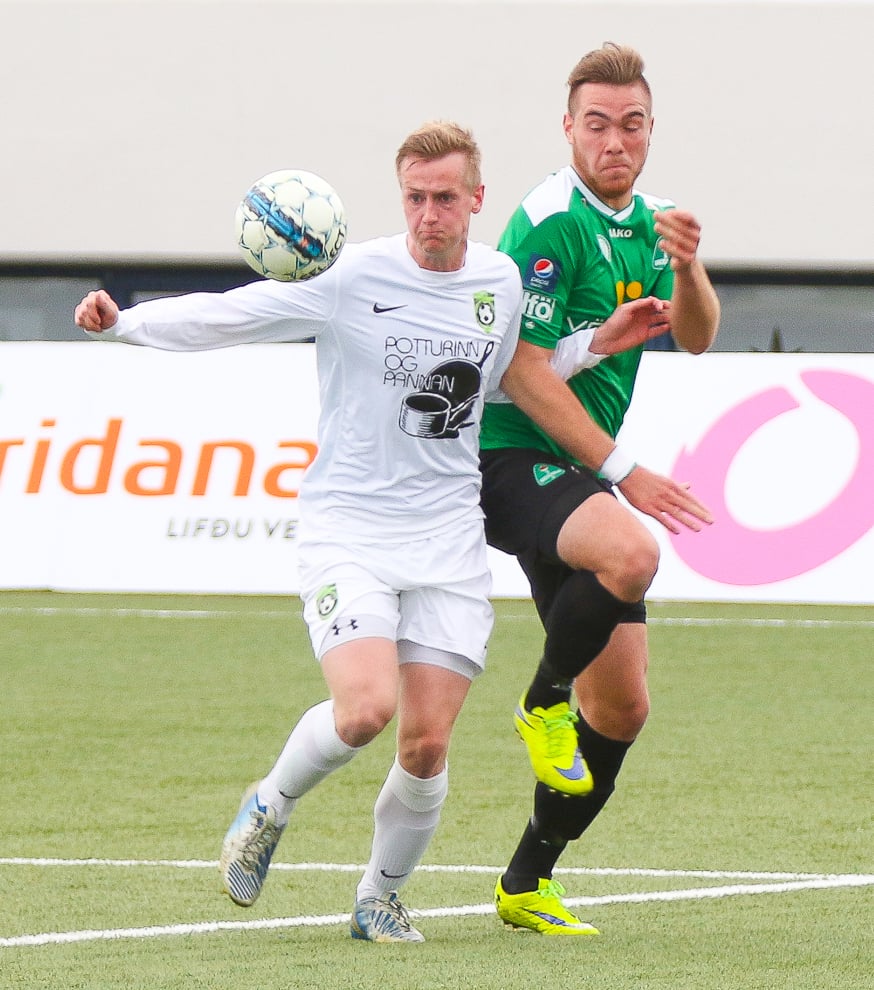 Atli Sigurjónsson nálægt því að skora úr aukaspyrnu! Flott spyrna en Pétur Már Bernhöft varði glæsilega í hornspyrnu.
